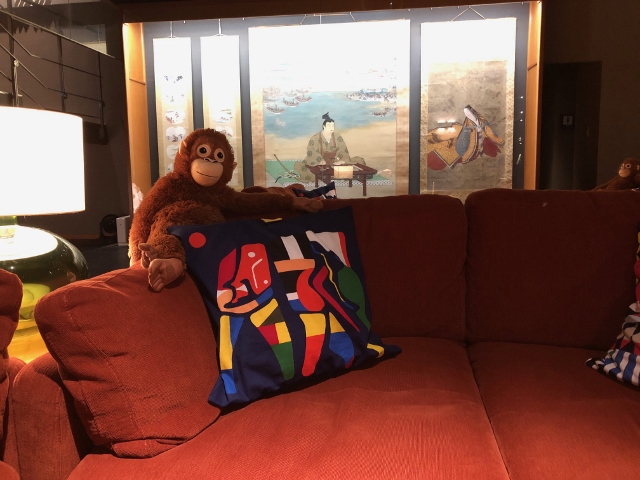 と、言うことで当館ラウンジにオランウータンが登場です。